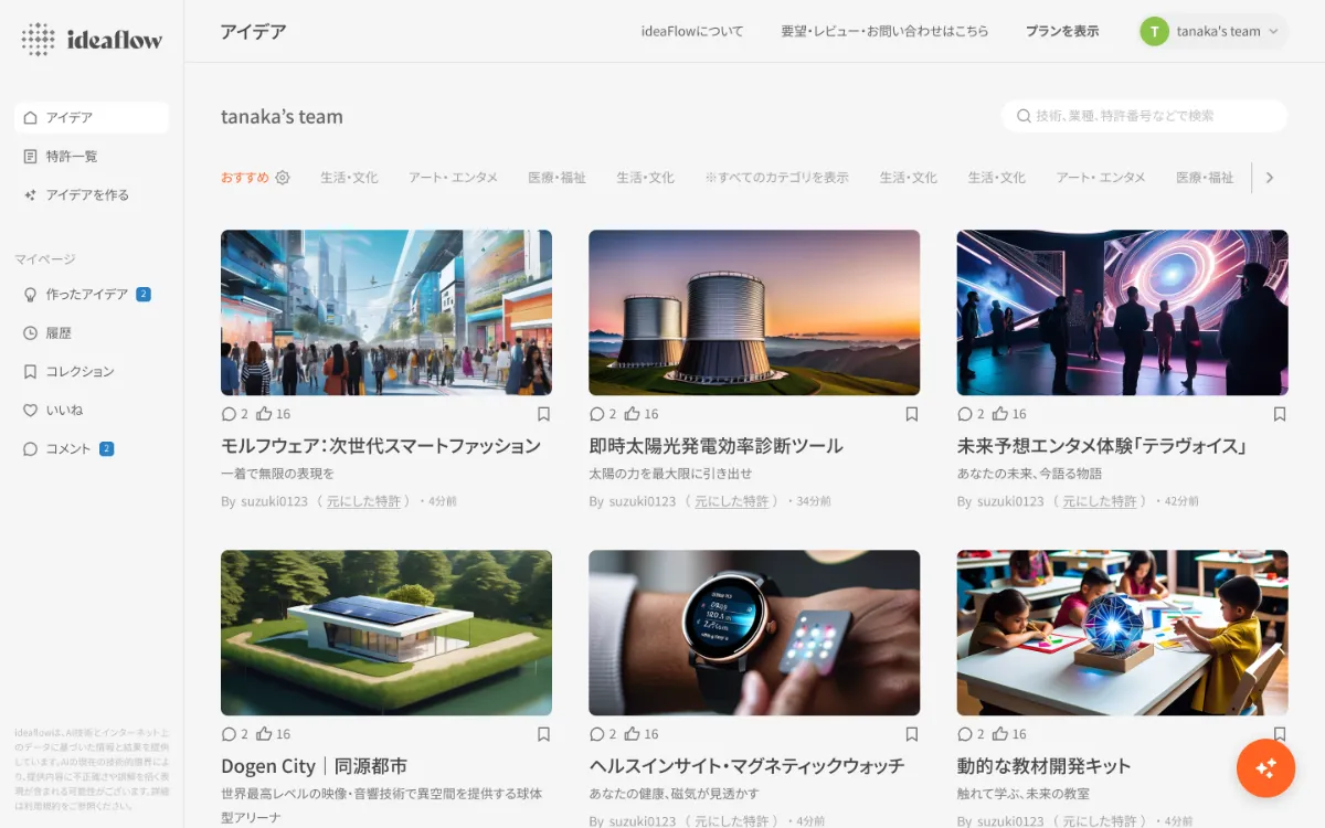 「知財×AI」によるアイデア共創プラットフォーム ideaflowのUI・ウェブデザインを担当させていただきました。